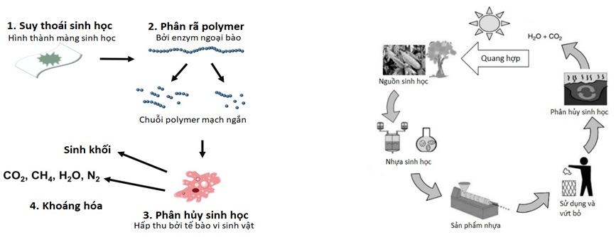 NPHSH là loại nhựa có thể bị phân hủy bởi các vi sinh vật, thường là vi khuẩn tạo thành nước, carbon dioxide và sinh khối trong một khoảng thời gian xác định. Các sản phẩm sau phân hủy có thể tiếp tục tham gia vào chu trình carbon và không để lại bất kỳ hợp chất nào có thể gây hại cho môi trường. Nhìn chung, quá trình phân hủy sinh học polyme có thể được chia thành 4 giai đoạn: suy thoái sinh học, phân rã polyme, phân hủy sinh học và khoáng hóa