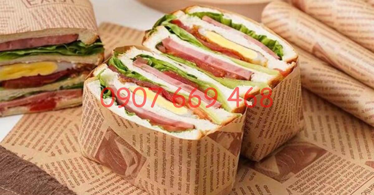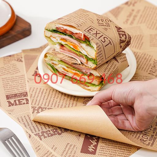 Giấy gói bánh mì hamburger chống dầu mỡ in sẵn size 30x30