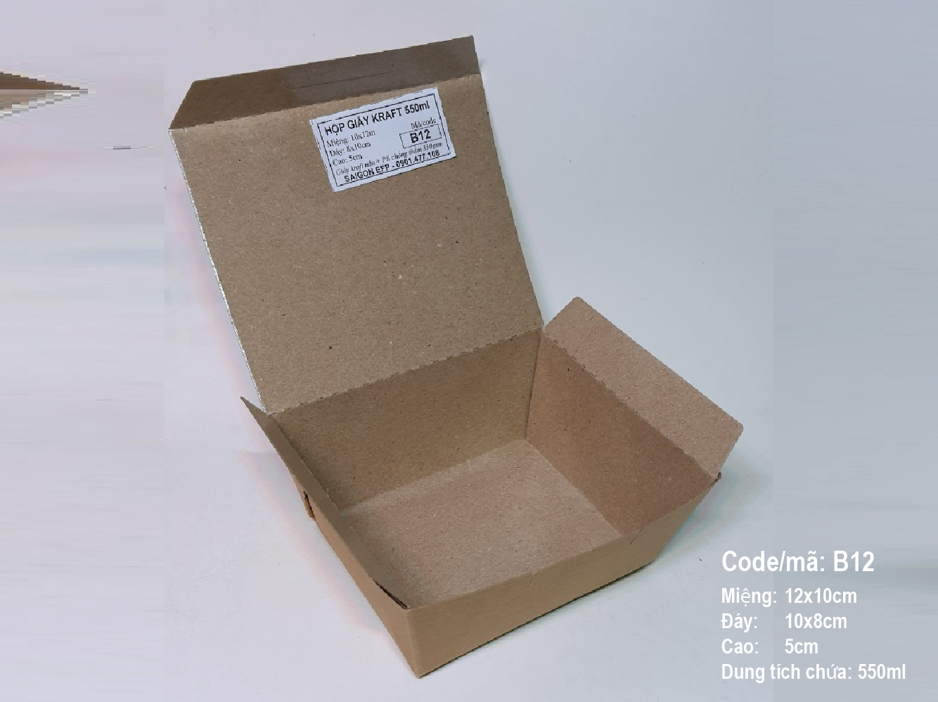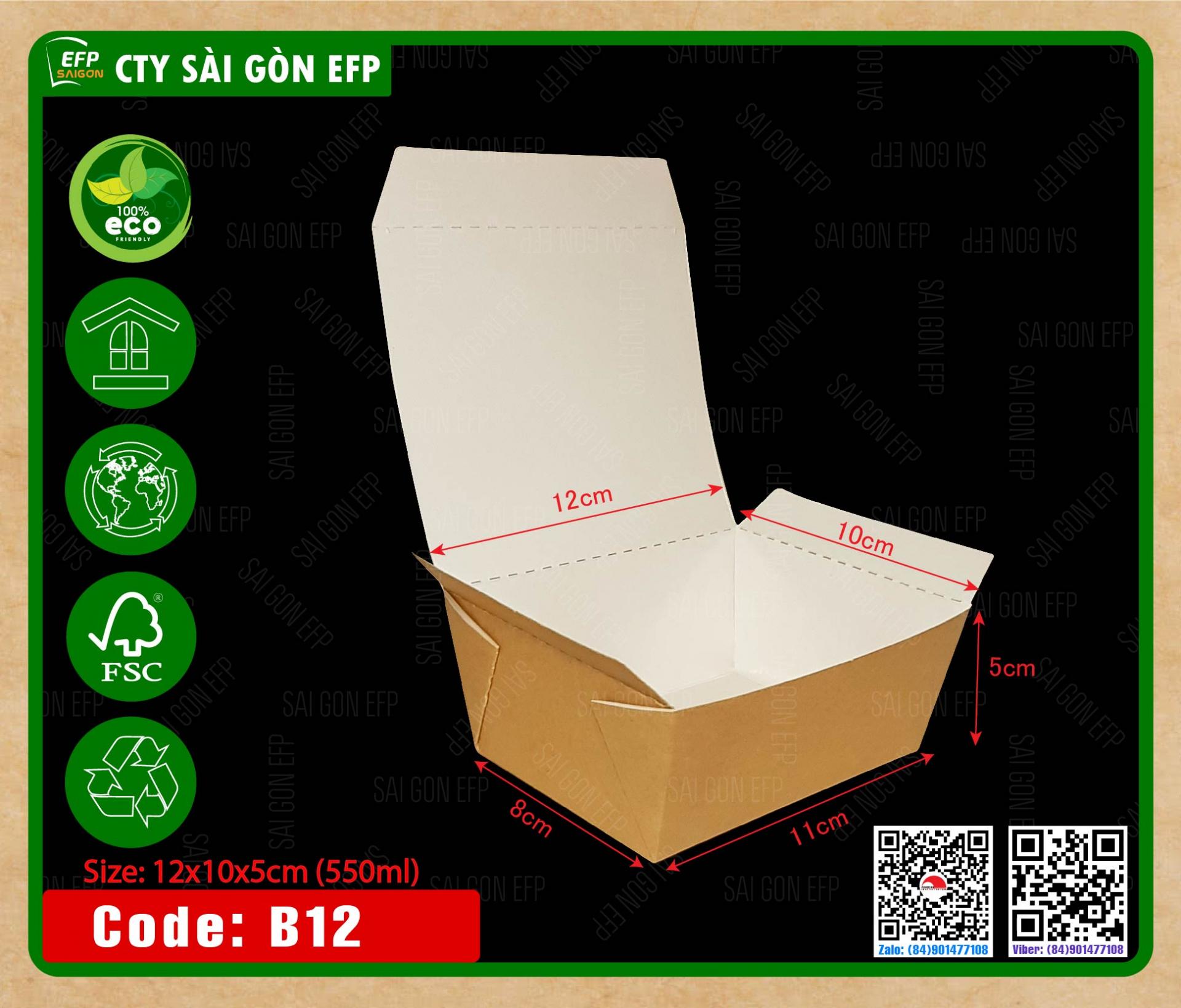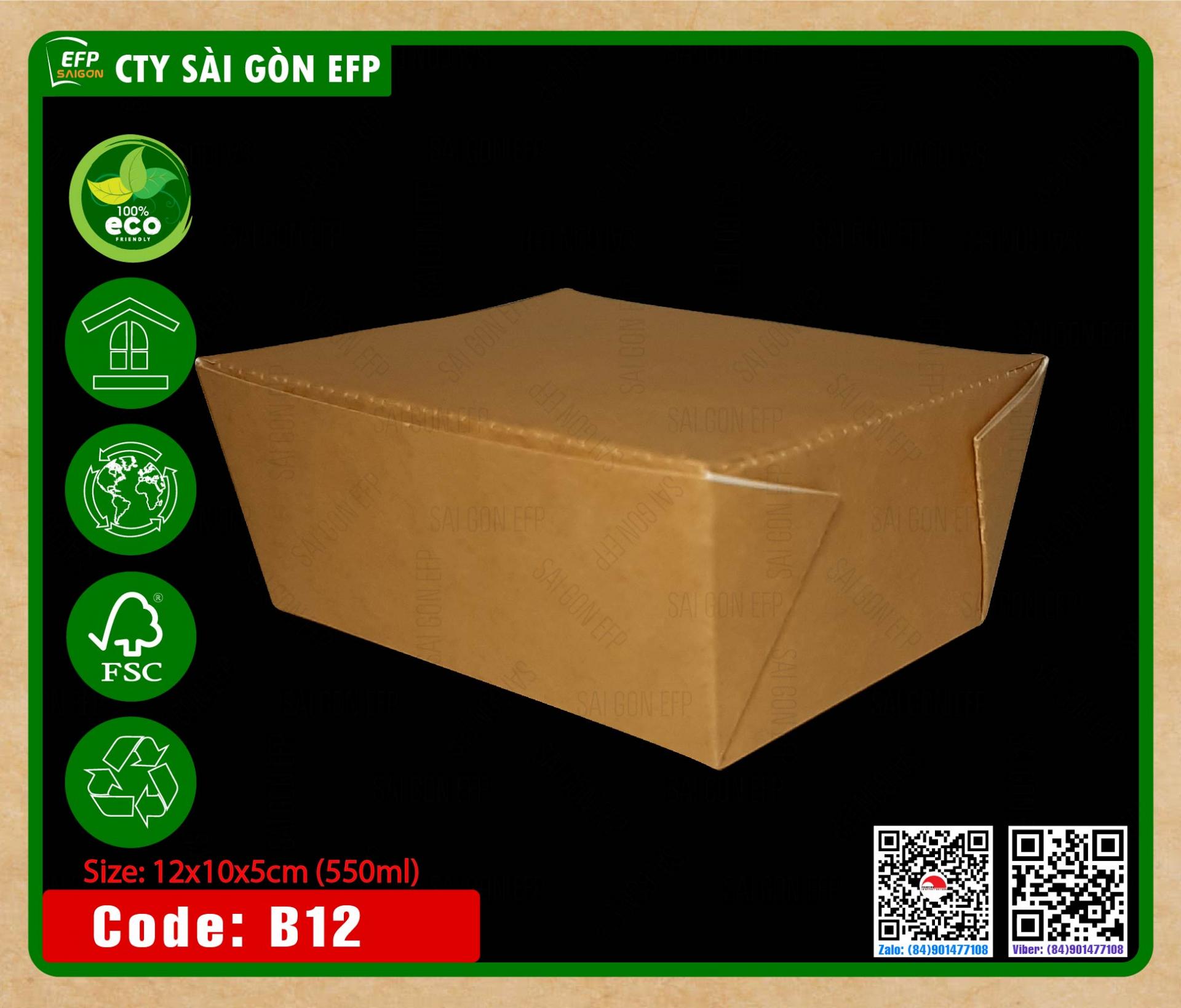 Hộp giấy kraft, hộp giấy đựng xôi chiên, hộp giấy đựng cá viên, hộp giấy đựng thức ăn, hộp giấy chống thấm nước, hộp giấy đựng cơm, hộp giấy tự phân hủy, hộp giấy takeaway, hộp giấy, BOX-B12